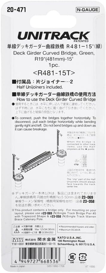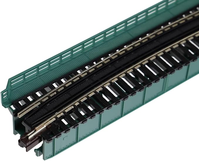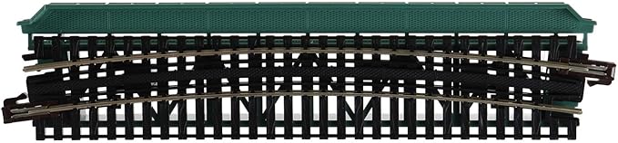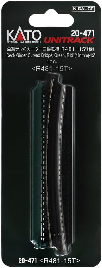 既存製品とは異なり保線通路 (手すり)がカーブの外側についた曲線鉄橋です。<br>既存の単線デッキガーダー曲線鉄橋よりも一回り大きいカーブ径のため、合わせることで複線橋梁としてお楽しみいただけます。