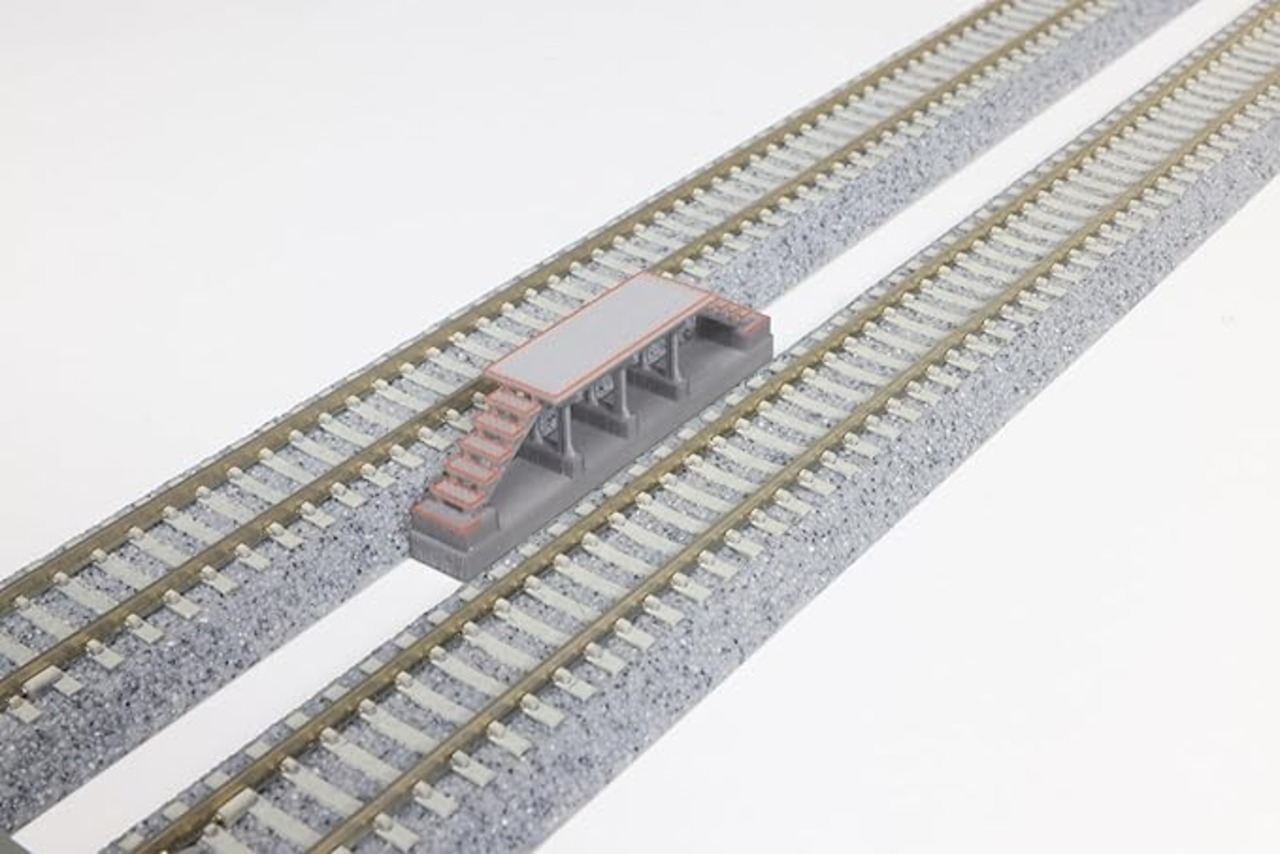昇降台は主に留置線や車両基地で運転士や職員が列車の乗降に使用する台で、ユニトラック複線間隔 (34mm)にフィットするサイズで作られた着色済完成品です。