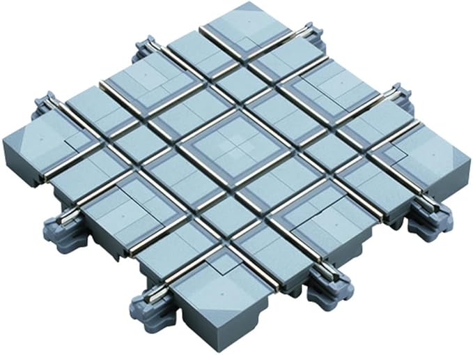 交差による広がりを楽しめる本製品をユニトラムの基本セットや拡張セットと組み合わせることで奥行と変化のある街並を表現することができます。