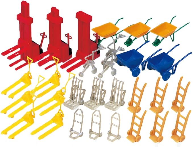 ドイツのプライザー(Preiser)社からの直輸入HOゲージキット。小型フォークリフト、ハンドパレット、ネコ車などの運搬台車8種のセット。生き生きとした生活感のあるリアルな鉄道シーンの再現、演出に使用できる。