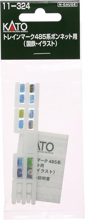 クハ481 100 ボンネット形の先頭車に適合するトレインマークセット。昭和53年10月ダイヤ改正から採用された、イラスト入トレインマークを各地の列車から12列車を選択、各1両分2個入。「いなほ」「鳥海」「北越」「ひたち」「白鳥」「加越」「しらさぎ」「はくたか」「雷鳥」「有明」「にちりん」「みどり」。
