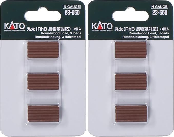 KATOのNゲージ車両用積荷パーツ、丸太 (RhB 長物車対応)3個入です。