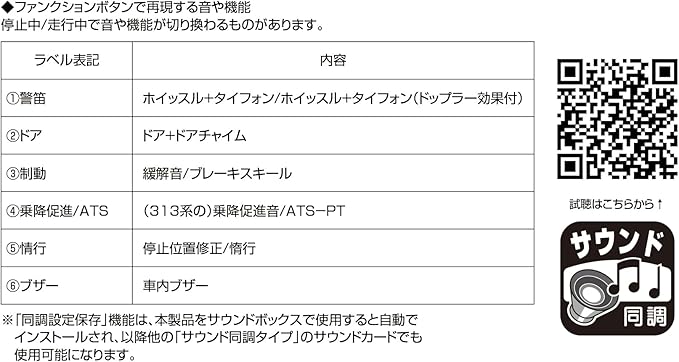 ファンクションボタン4番には313系との併結時に最適な「乗降促進」のサウンドを収録。
