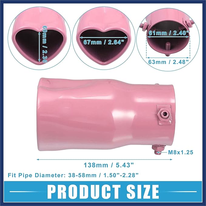 【仕樣】: 交換用 - 排 気チップパイプの外径は63 mm / 2.48インチ(D)であり、排 気チップパイプの出口サイズは67x60mm / 2.64インチx2.36インチ(L*W)です.