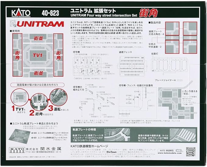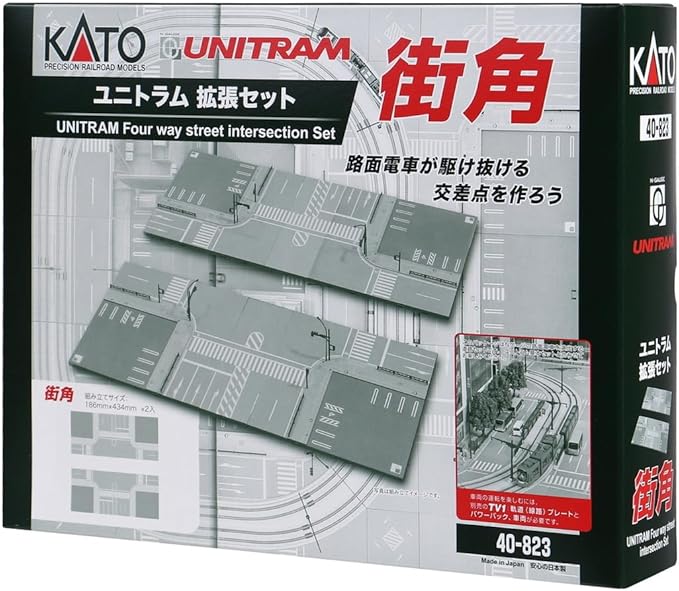 軌道プレートを含まない道路プレートのみのセット。 スターターセットやTV1などの軌道プレートに増設し、外周の道路・敷地を拡張可能。・繁華街の交差点のシーンを再現可能。 本製品1点の使用でユニトラムスターターセットやTV1の路面軌道エンドレスの道路や建物のエリアを縦/横いずれか一方向を延伸可能。 内容はそれぞれ、従来製品40-820 ユニトラム 拡張セット 街並、40-821 ユニトラム 拡張セット 街角と同等。 各製品ともパッケージを従来製品よりも小形化。 ※鉄道模型はレールより給電するシステムです。走行、発光、点灯する場合でも電池は使用しません。 ※本製品に電池は含まれません。 ※本製品に燃料は使用しません。 ※本製品に燃料は含まれません。 ※本製品に塗料は含まれません。