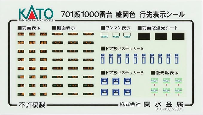 付属品:交換用前面表示 (無地) 2、行先表示シール、消灯スイッチ用ドライバー、電連 2。