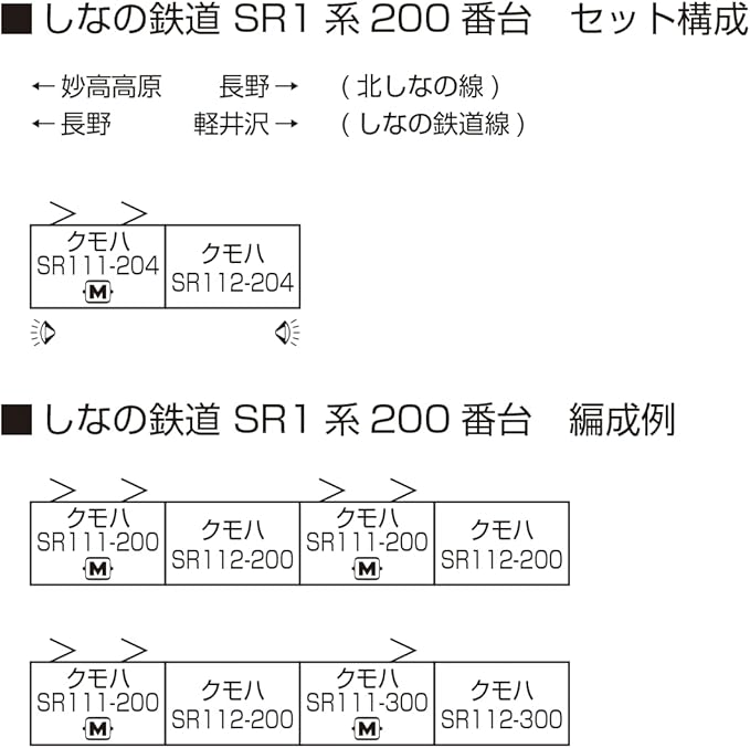 前面表示は「ワンマン 長野」を取付済。交換用行先表示を付属 (「ワンマン 軽井沢」・無地 各2両分)。