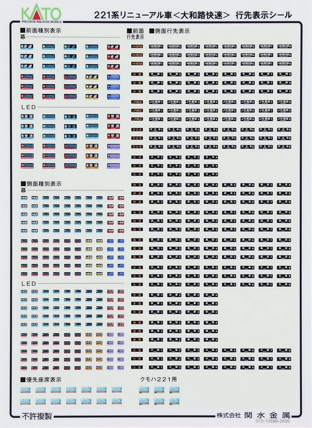 前面表示は「Q 大和路快速 奈良」印刷済。交換用の前面表示は「O 大和路快速 大阪環状線」「F 直通快速 大阪」が付属のほか、無地のものを2個付属。