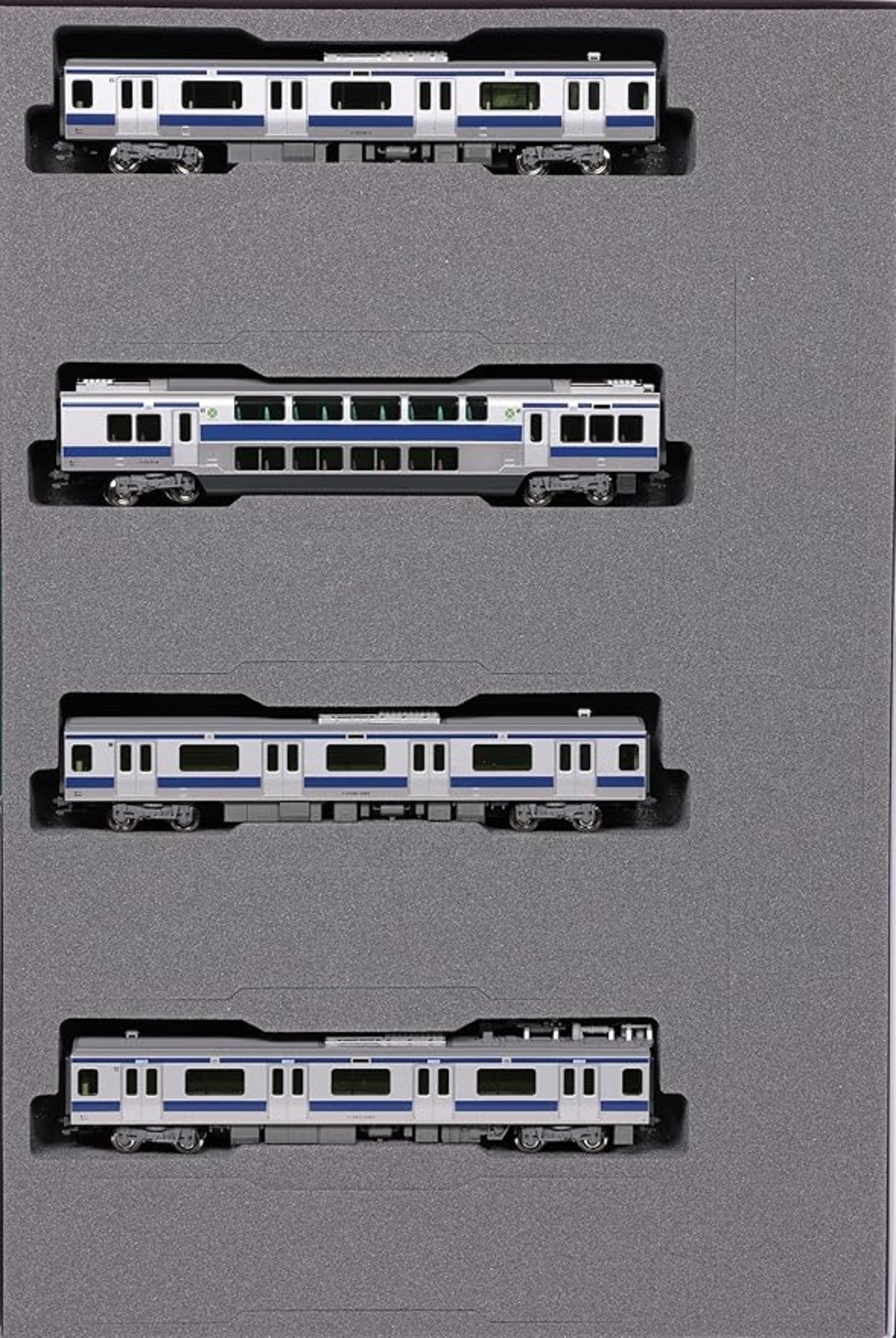 パッケージは、基本セット (4両)が増結セットA (4両)のブックケースに収納でき、増結セットB (2両)の内容も付属編成セット (5両)のブックケースに収納可。