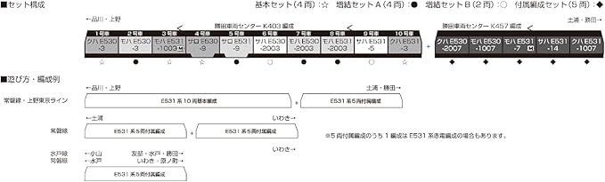 勝田車両センター所属のE531系K403編成 (基本編成)・K457編成 (付属編成)を製品化。