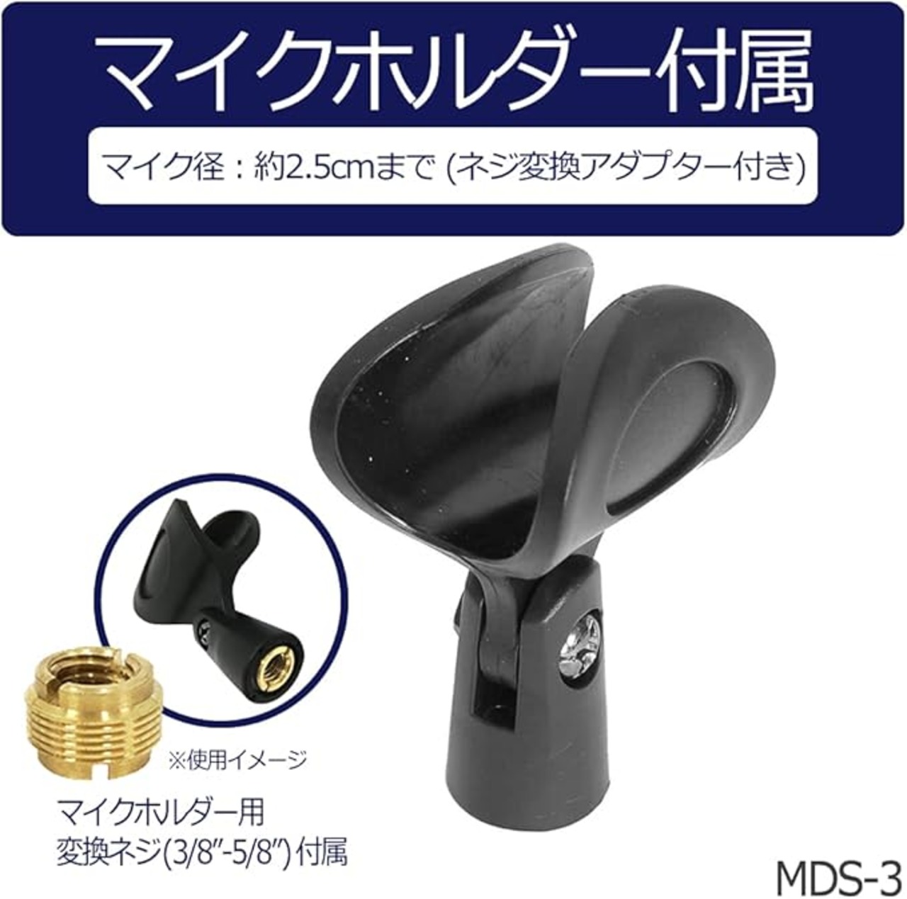 マイクホルダー及び3/8インチ→5/8インチ変換アダプター付属