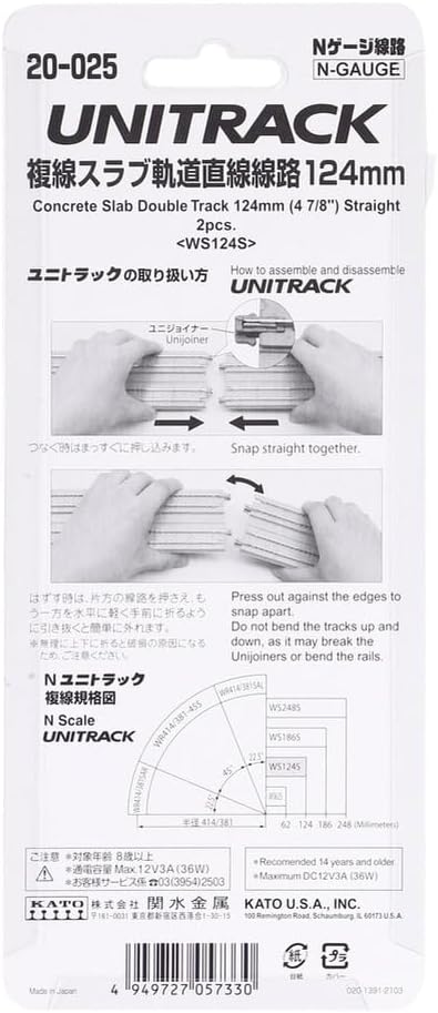 KATO Nゲージ 複線スラブ軌道直線線路 124mm 2本入 20-025 鉄道模型用品 ( 2)