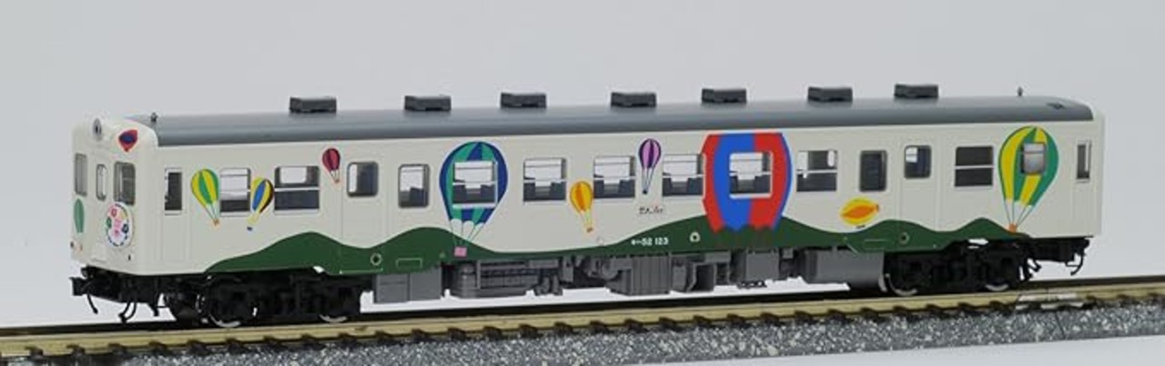 国鉄キハ52は1958年に誕生し、100番代は1962年から製造され、122番・123番の2両は 1986年当時の長野鉄道管理局内のイベント列車用に塗色変更され、国鉄~JRに跨って、 約4年間「ときめき色」を纏い、一般運用の合間に「ときめきの恋列車」や「青春の風号」など 各種イベント列車に使用されました。JR化後~平成となった現在では珍しくない塗装変更された車輌も、当時の国鉄では斬新な デザインを採用した車輌で、ひときわ目立つカラーリングを誇っていました。 製品は (株)トミーテックの設計・製造により、美しい塗装と優れた走行性能で当時の姿を再現しています。