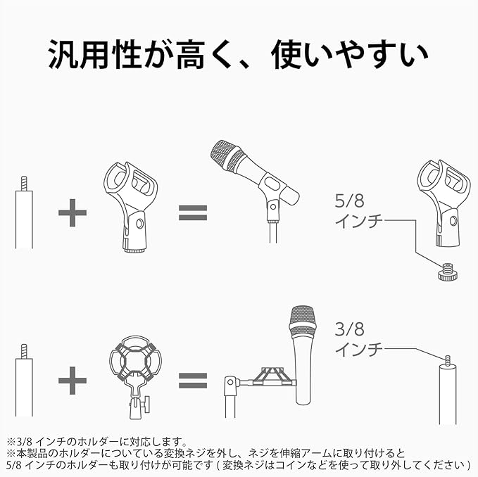 伸縮する支柱にマイクを装着して、お好みの高さに調節できます。