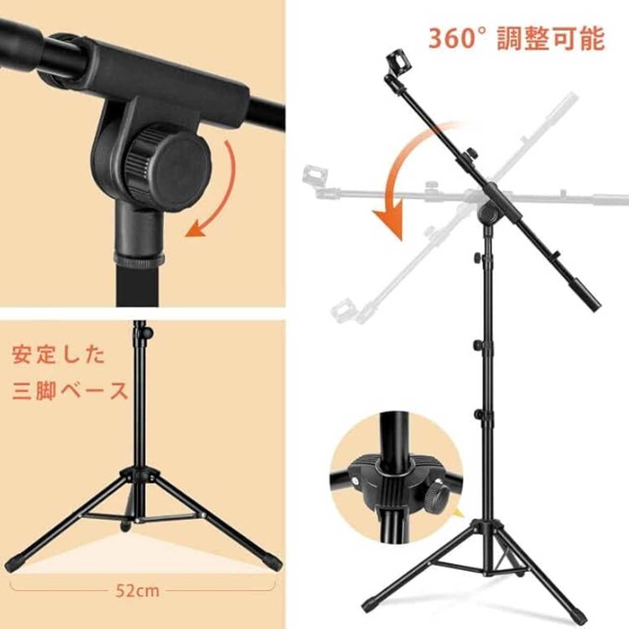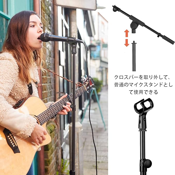 【伸縮&着脱式ブームアーム】ブームアームは約43~76cmまで伸縮可能。角度は360 自由に調整でき、細かなポジション設定が簡単です。取り外せば、ストレートタイプのマイクスタンドとしても使用できます。