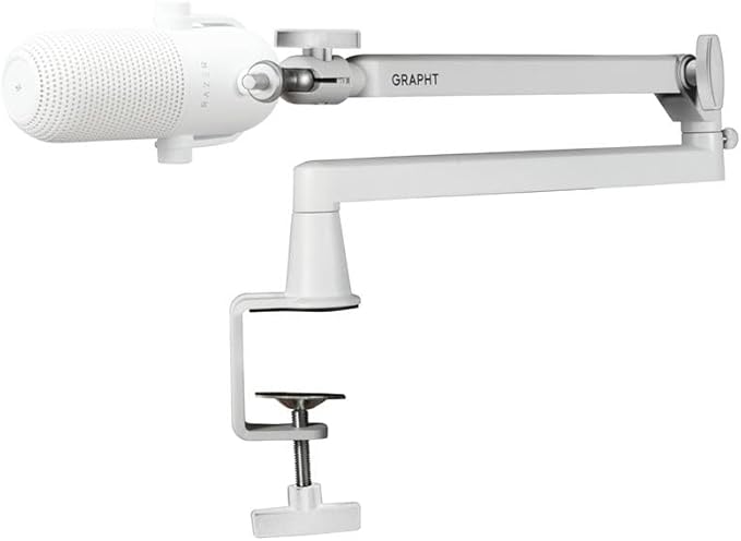 GRAPHT マイクアーム ロープロファイル MICROPHONE ARM 【ピュアホワイト】白 耐荷重 2kg 360度回転 角度調節可能 3/8 5/8 マイククリップ付き クランプ式 配信 レコーディング ゲーム実況 ストリーミング 下から
