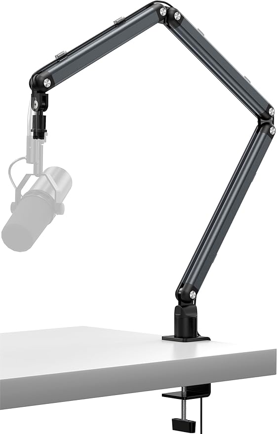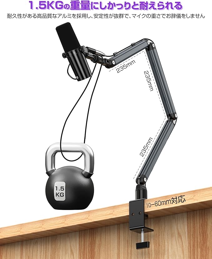 マイクブームアーム マイクスタンド コンデンサーマイク用 アルミ製 耐荷重1.5KG 八つ可動関節 広い可動域 角度調節可能 折りたたみ 省ベース ケーブルガイド マイククリップ付属 収納便利 配信/収録用/生放送実況