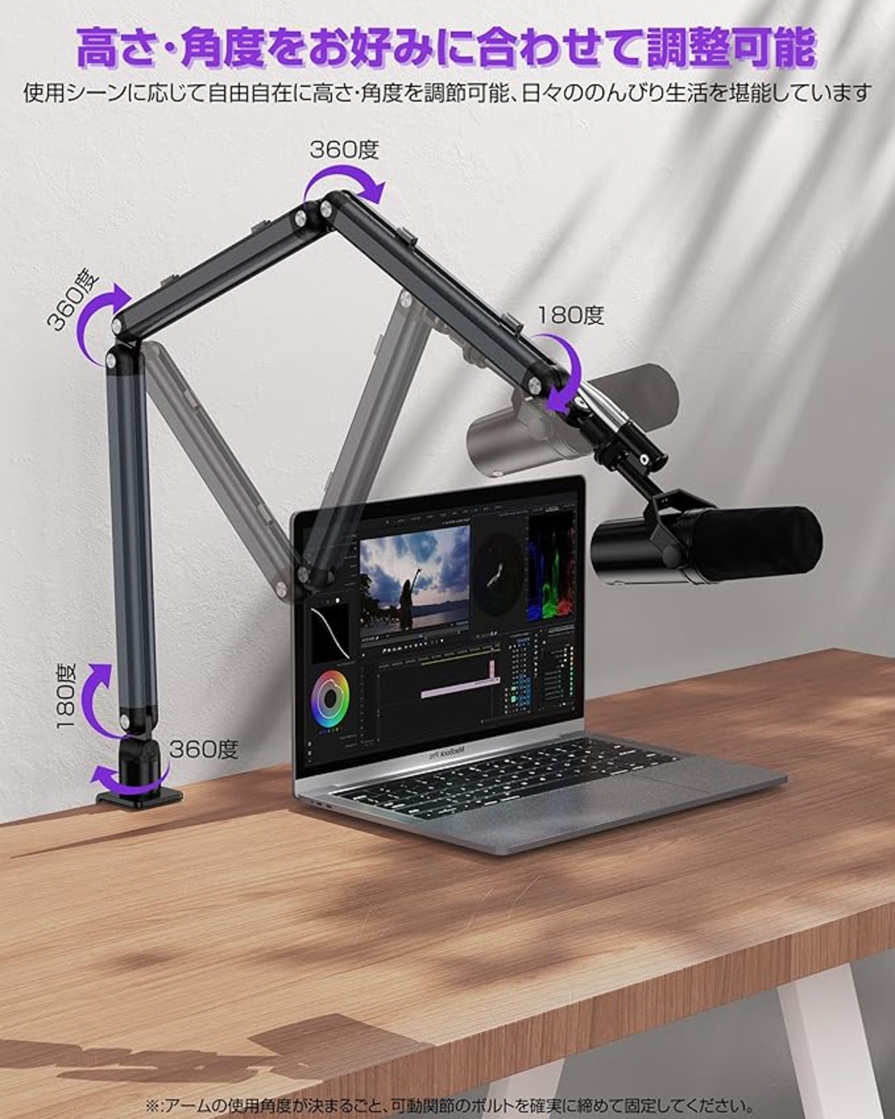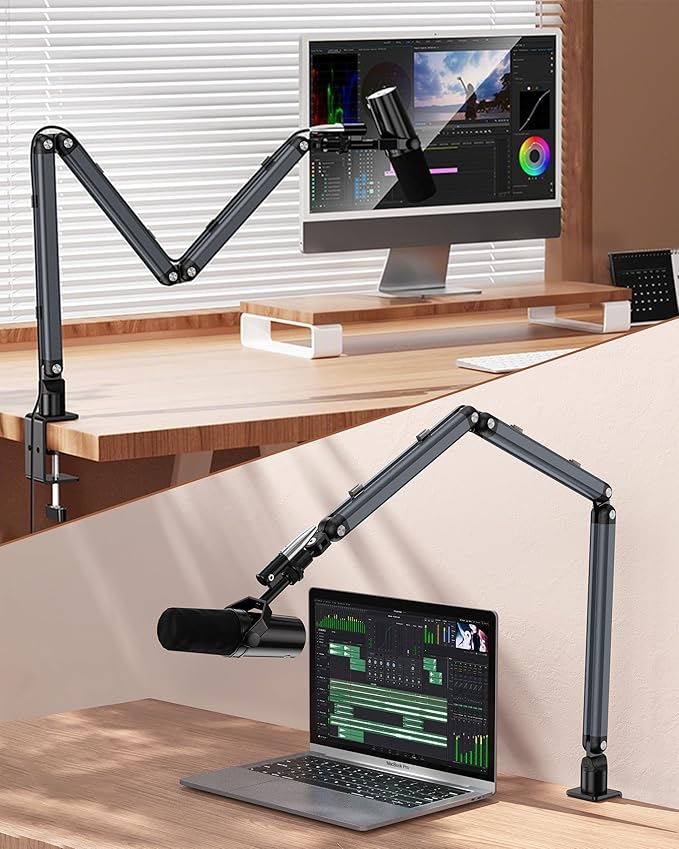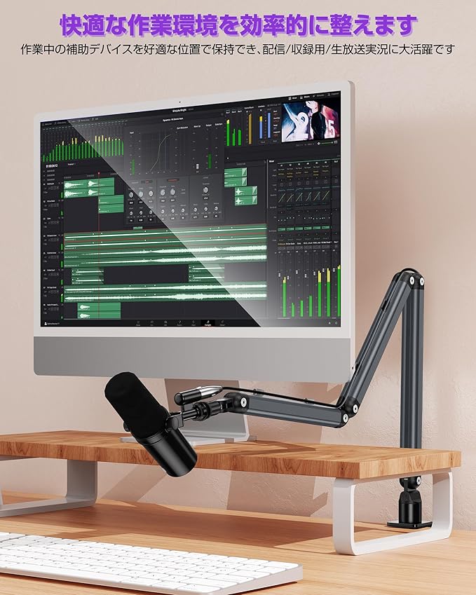 【マイクアーム・幅広い可動域】本製品は八つ可動関節を備えており、高さや角度を自由自在に調節できるマークアームです。幅広い可動域で、作業内容に合わせてマイクの位置を自由に調整し、使いやすい位置で持っていけます。または、折り畳み式で、折り畳めば場所を取らない、使う時は手元まで伸ばすことができ、空間を有効に活用できます。なお、マイクを好適な位置で長時間に保持でき、配信/収録用/生放送実況に大活躍です。