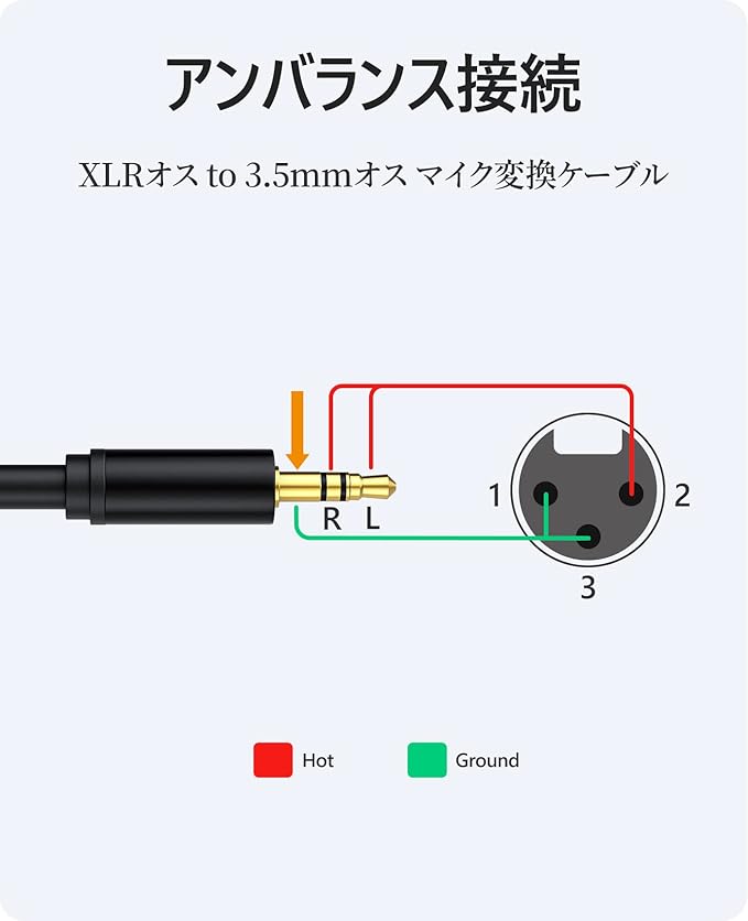 【3.5mm to XLR 変換ケーブル】本製品はアンバランス3.5mm(オス) to xlr (オス)変換ケーブルです。★ご注意:本商品はアンバランスケーブルですので、バランスケーブルに非対応です。