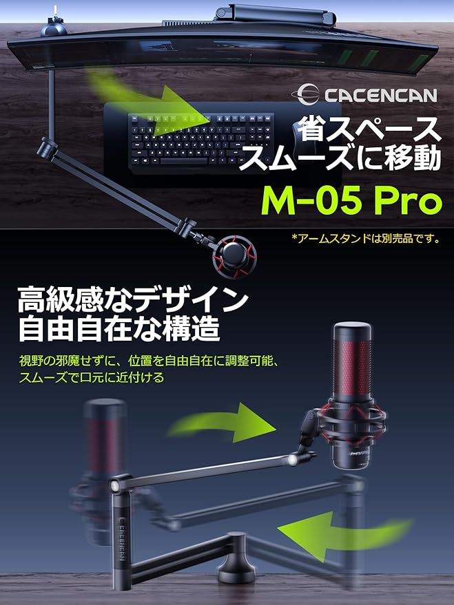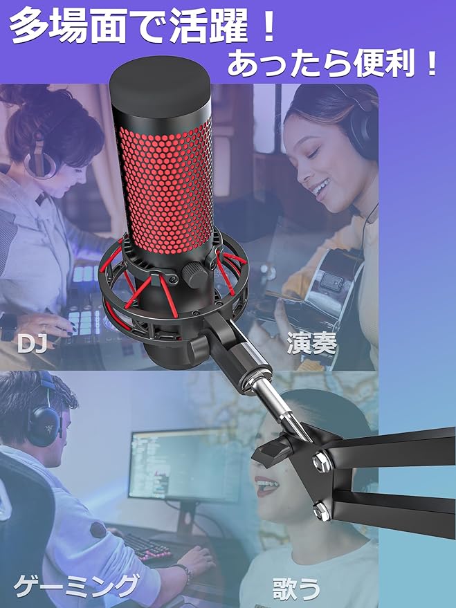 3/8"-5/8"インチ変換ネジが付き、さまざまなマイクブームアームと互換性があります。 アダプターを付けて市販のマイクアームにセット可能で、様々な位置と角度が調整でき、最適な距離や口元に近プけることはより素敵な音質/音声を収録できます。 また、マイクブームアームに簡単に取り付け、完璧な統合を実現します。