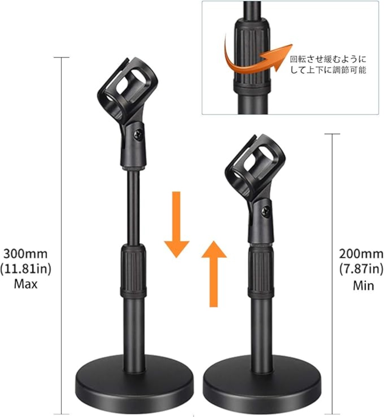 卓上マイクスタンド 高さ調節可能 安定 ブラック マイクホルダー付