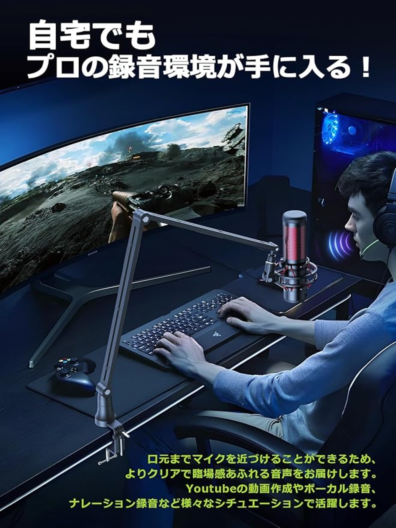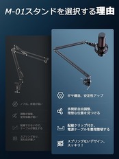 M01 マイクアーム マイクスタンド アーム マイクブームアームスタンド バネなし 角度調節可能 伸縮 折り畳み式 生放送 実況 配信 収録 配線フック・変換ネジ付き 日本語説明書付