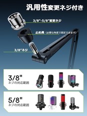【配線フック・変換ネジ付き】 付属してある3/8-5/8インチネジ付き、マイクスタンアームの動きに順応して、振動から守り、音声の乱れを抑える効果があります。 収録、配信、レコーディング、Skype、オンライン授業 等に最適です! 生配信、レコーディング、カラオケ、歌ってみた、YOUTUBE、ギター、ドラム、ピアノ、自宅レコーディング、宅録なども適用です。