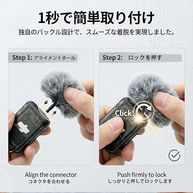 簡単に取り付け可能で、DJI Mic 2 ワイヤレスマイクトランスミッターの溝に小さな棒を挿入するだけで、しっかりとフィットし、落ちることはありません。