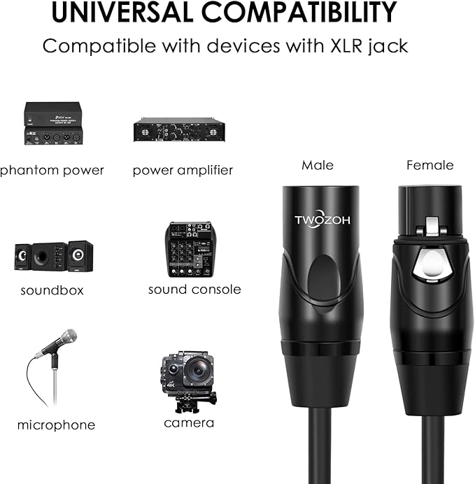 Twozoh XLRオス-メスマイクケーブル 2M 2本入り バランス3ピン XLRマイクコード (Profesional/Hifi)