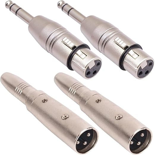 XLR オス - 1/4 インチ メス アダプター & XLR メス - 1/4 インチ オス アダプター、3 ピン XLR プラグ - 6.35mm TRS ステレオ オーディオ アダプター (ミキサー、マイク、アンプなど用) (4 パック)