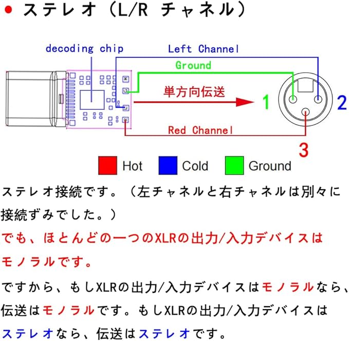 この type c xlr 変換 ケーブル は ステレオ接続です。でも、ほとんどの一つのXLRの出力/入力デバイスはモノラルです。ですから、伝送がモノラルか、ステレオかは、XLRのデバイス次第です。単方向転送 : usb type c xlr 変換 ケーブルは タイプ c を持つデバイスとXLRを持つ機器の接続に最適な usb c xlr 変換 キャノン ケーブル で、usb c キャノン 3 極 変換 usb c xlr ケーブル です