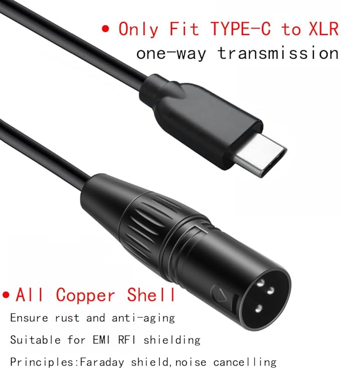 3重シールド(銅+アルミ箔シールド+PVC):電磁干渉防止、RF、WIFI、AM、静電気放電、静電気防止、接地に適しています。この usb c xlr ケーブルの干渉防止回路:ファラデーケージ、ノイズキャンセリング