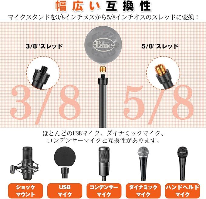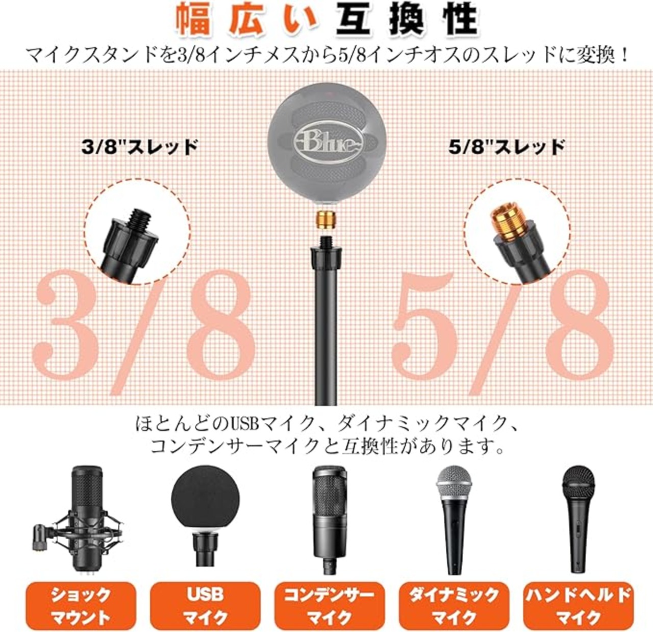 【多機能&幅広い応用】EMARTのマイクスタンドは3/8-5/8インチネジ付き、様々なマイクを互換性があります。収録、配信、レコーディング、Skype、授業、講演 等に最適です!生配信、レコーディング、カラオケ、YOUTUBE、ギター、ドラム、ピアノ、自宅レコーディング、宅録など多様にシーンでも対応できます