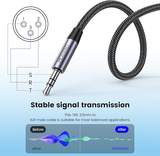 MOSWAG 3.5mmからxlrケーブル 3.5ミリメートル (オス)からXLR (オス) 変換ケーブル アンバランスTRS~マイクメッキケーブル互換iPhone、iPod、携帯電話、ノートパソコン、スピーカー、ミキサー、マイク