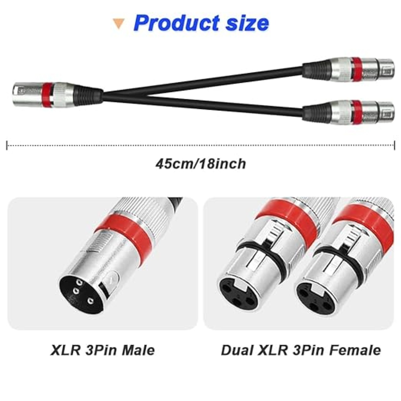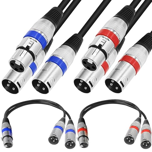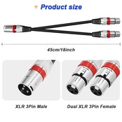 XLR 1~2スプリッタマイクロフォンケーブル、XLRメス~デュアルXLRオスバランスパッチYマイクコード(45cm/1.5FT)