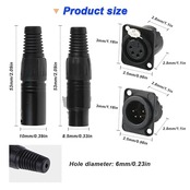 製品サイズ:XLRオスコネクタ寸法:19 x 69 mm / 0.75 x 2.7インチ(幅 高さ)。 XLR メスコネクタの寸法: 19 x 99 mm / 0.75 x 3.9 インチ (幅 x 高さ)。 XLR オス & メス ジャック ソケットの寸法: 26 x 26 x 22 mm / 0.99 x 0.99 x 0.86 インチ(長さ x 幅 x 高さ)