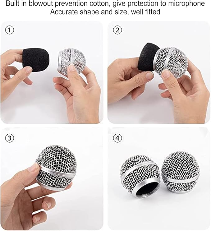 SM58用マイクグリルグリルボールヘッド交換用、吹き出し防止コットン内蔵マイクボールヘッドメッシュグリル、交換用マイクグリル