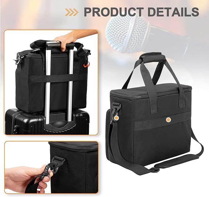 多機能マイクケース:マイクケースは仕切り設計を採用しており、ニーズに応じて収納スペースをカスタマイズでき、コンパクトで軽量なので持ち運びも簡単です