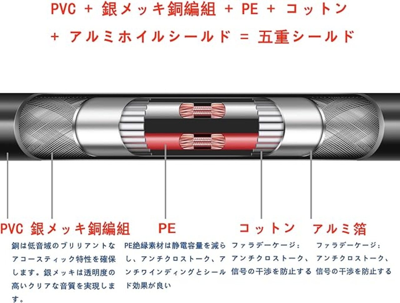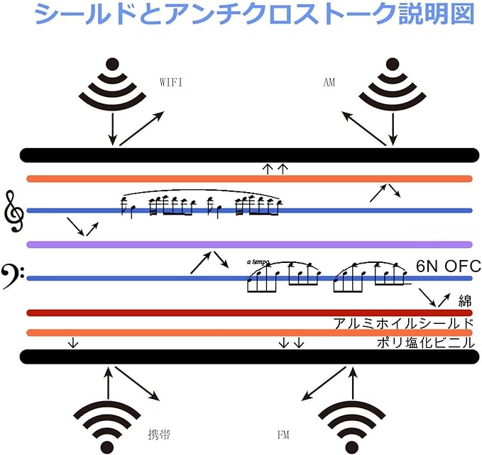 4重シールド(118編組 銅+アルミ箔シールド+PE+綿):電磁干渉防止、RF、WIFI、AM、静電気放電、静電気防止、接地に適しています。干渉防止回路:ファラデーケージ、ノイズキャンセリング。この3.5 xlrマイクケーブルはポリエチレンPE絶縁素材付くから、環境保護、耐食性、熱特性、紫外線と湿気に耐えられます
