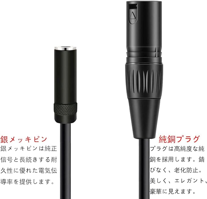 3.5mmプラグは純銅を採用します。錆びなく、老化防止。プラグは純正信号と耐久性に優れた電気伝導率を提供します。美しく、エレガント、豪華に見えます。耐食性と耐摩耗性を持ち、電気抵抗が低いです。極端な温度(–60 C - 750 C)でも耐久性と安定性を持ちます。XLRキャノンジャックは高品質の純銅を採用します。3.5mmとXLRコネクターは10000回以上の挿入および引抜試験に合格しました