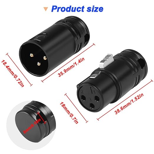 [コンパクトサイズ] この金メッキ3ピンXLRマイクワイヤはんだ付けプラグは、一般的なXLRプラグの半分というコンパクトなサイズで設計されており、狭いスペースでもフレキシブルに使用できます。