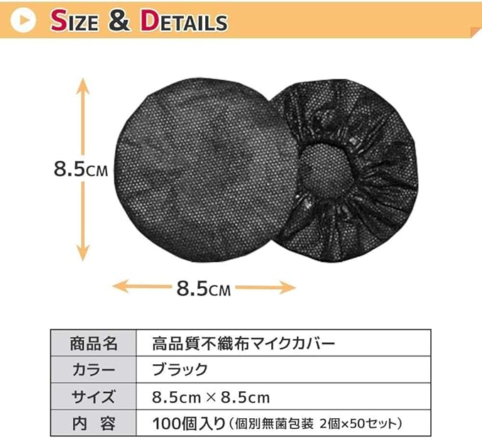 マイクカバー 使い捨て 個包装 まとめ買い 黒 飛沫防止 マイク風防 無織布 カラオケ 唾 ほこり 防止 U型 O型 兼用 (100個)