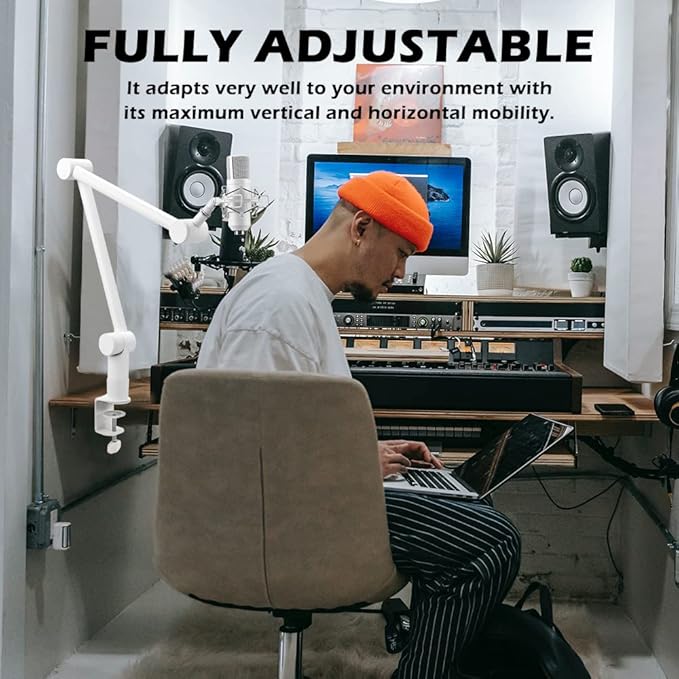 完全に調整可能: ボールヘッドと回転ベース。ポッドキャスティング、ゲーム、ストリーミング中に音声を最適化できるように設計されたこのマイク アームは、ニーズに合わせて回転する 360 度調整可能なアームを備え、自宅の机やポッドキャスティング スタジオで使用できます。