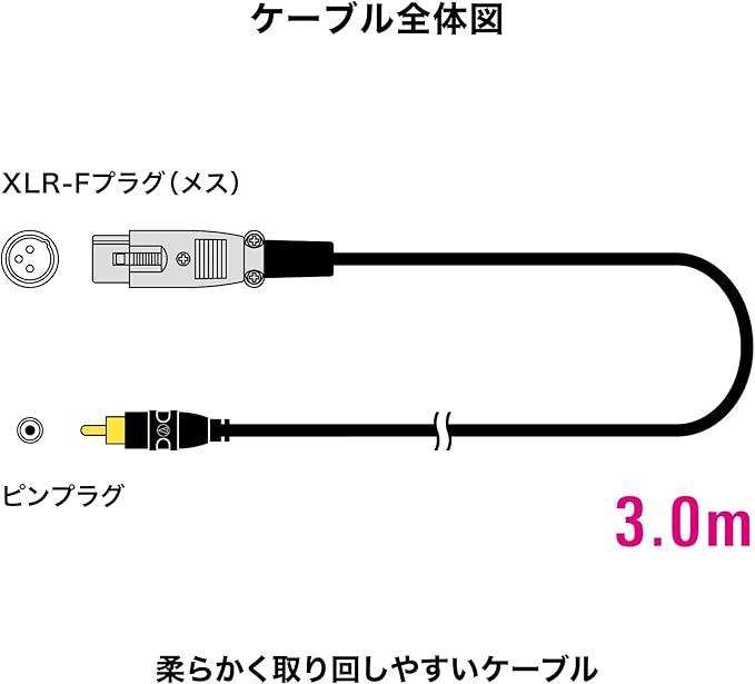 音質と使いやすさを両立したオーディオケーブル。XLR-Fプラグ−ピンプラグ