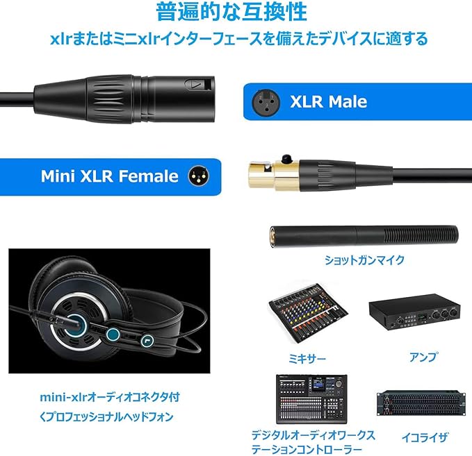 【対応設備】会議用マイク:MS4001/BM-620/630Cマイク、 M6バウンダリーマイクに対応;ビデオデバイス:F8n レコーダー、Sound Devices レコーダー、VIDEOMIC X マイクに対応;HiFi: x10TI デジタルターンテーブル、谷津HA-2に対応。(まだ更新しています。)このキャノンジャック(オス端子)- ミニ キャノン プラグ(メス端子)変換ケーブル ミニxlr xlr 変換 ケーブル は3ヶ月の保証を提供しています。ご不明がございましたら、お気楽にご問い合わせ下さい。
