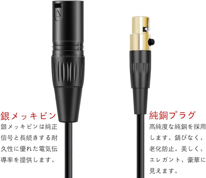 xlrステレオ xlrコネクターのプラグは純銅を採用します。純正信号と耐久性に優れた電気伝導率を提供します。24k金メッキ処理を施したミニxlrジャックは耐食性と耐摩耗性で、電気抵抗が低いから、伝送ロスを最小限に抑えます。極端な温度でも耐久性と安定性を持ちます。xlrプラグは高品質のメタルを採用します。mini xlrとXLRコネクタは10000回以上の挿入および引抜試験に合格しました