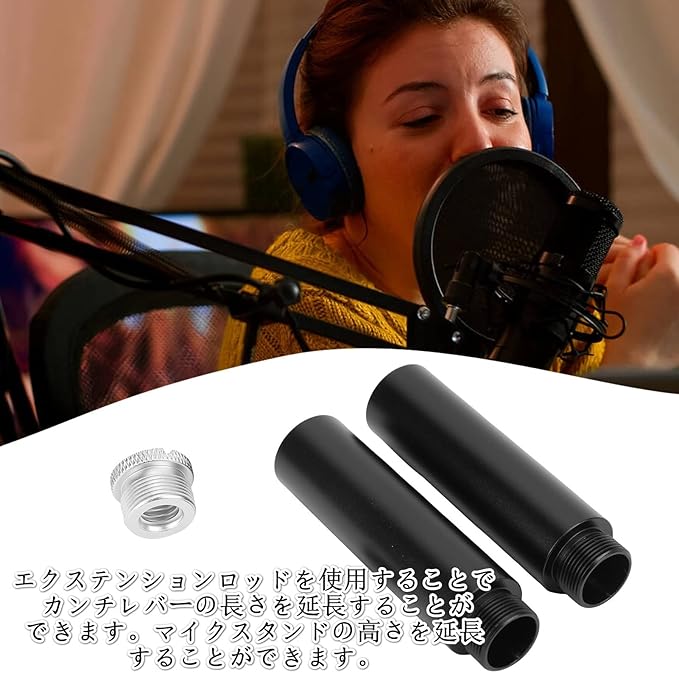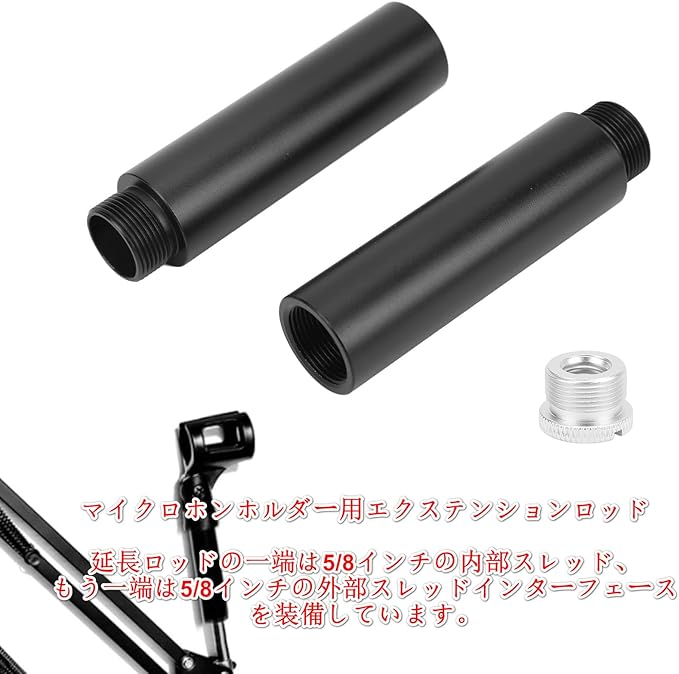 マイクホルダー延長ロッドセット 5/8インチめねじ付き2本マイクホルダー延長ロッド 5/8インチおねじインターフェース 3/8インチメスから5/8インチオスネジが付属