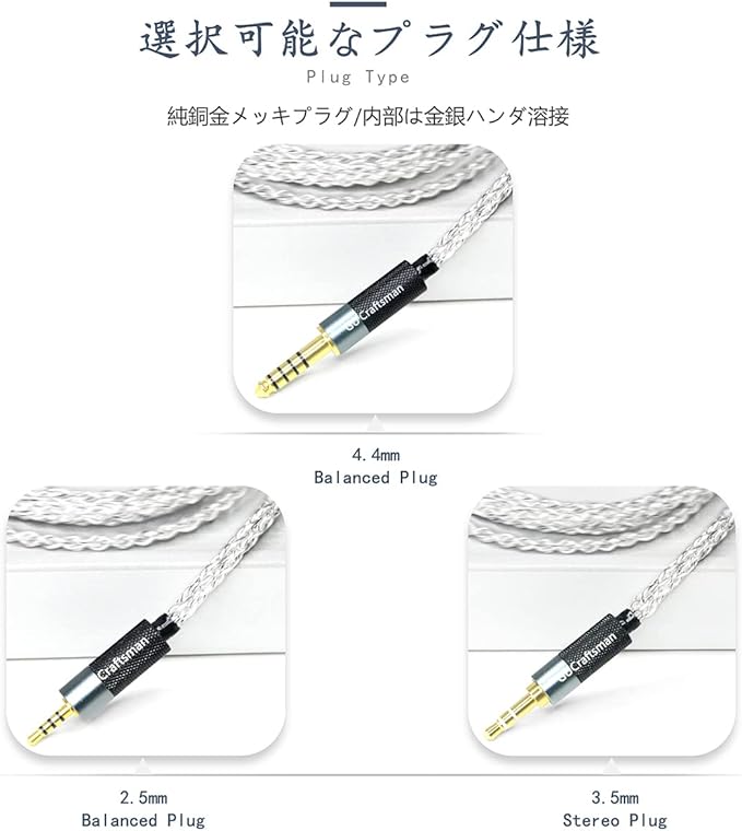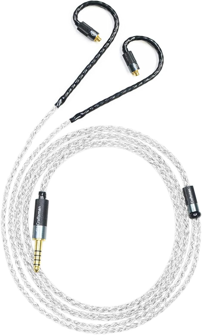 GUCraftsman MMCX 5N無酸素銅銀メッキ代替ケーブルは SHURE SE846 SE535 AONIC 5 Xelento Remote AK T8iE MkII T9iE Westone W80 EAS20 30 AC10 20 AM UM Pro30 Campfire Audio Dorado Vega Solaris ATLASと互換性あり (MMCX, 4.4mm プラグ)