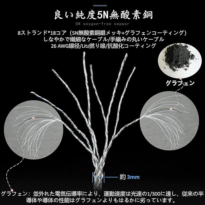 ケーブルは5N無酸素銅銀メッキ+グラフェンメッキでできており、ケーブルはプロの手編み技術を採用しており、ケーブルの長さは約1.2メートル(47.2インチ)です。