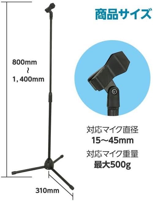 対応マイク重量/最大500g。